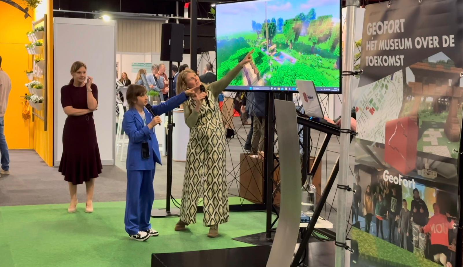 Op 17 april bezochten we met de Junior Klimaatburgemeesters de Klimaatexpo in Houten. Op de Klimaatexpo hebben zij hun coolste koelteplekken’ getoond die ze in Minecraft hebben ontworpen. Jongeren die dat wilden, mochten op het podium over hun ontwerp vertellen. De 3 mooiste ontwerpen kregen een prijs. De jongeren riepen gemeenten op om hun ontwerpen daadwerkelijk te gaan realiseren.